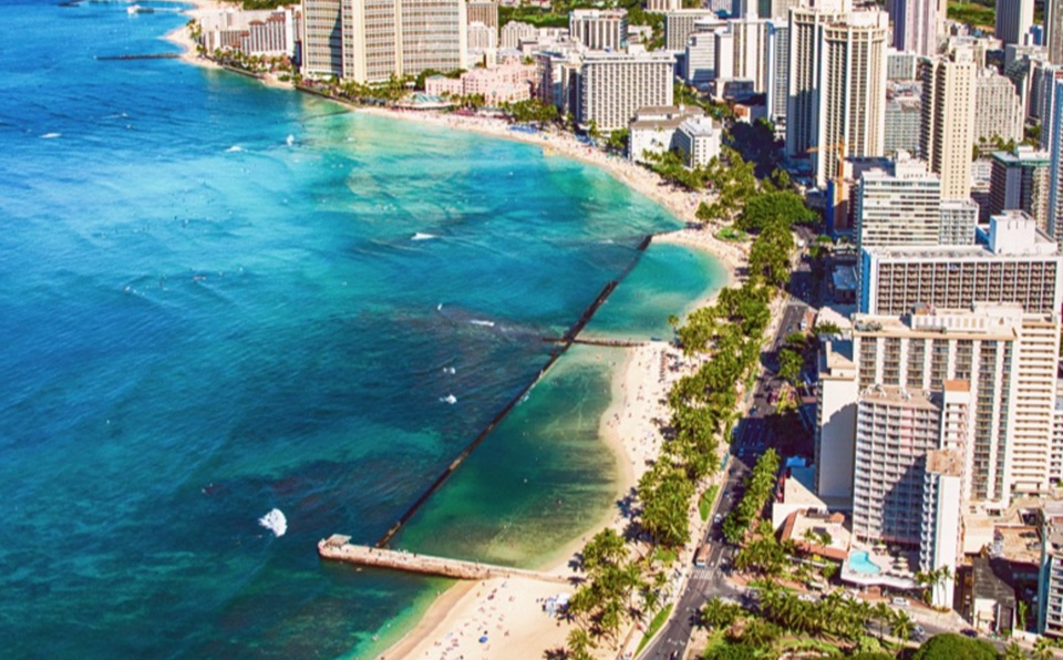 ダイヤモンドヘッド側から見たワイキキビーチ