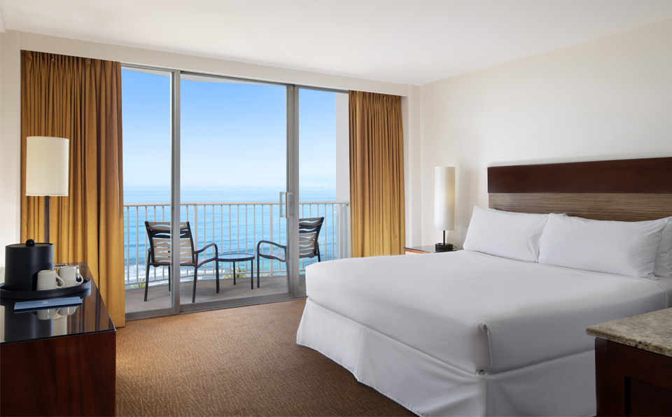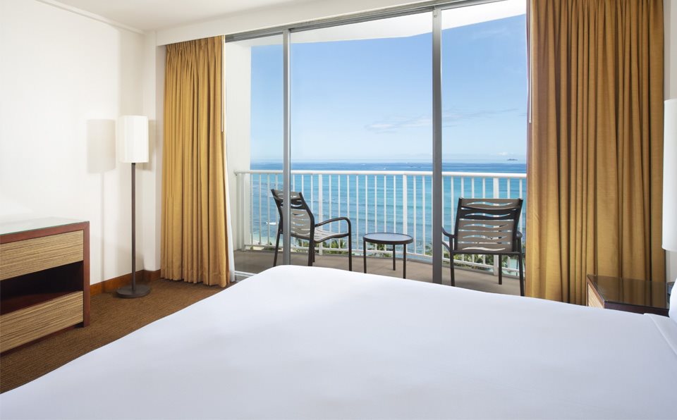 プールサイドルームを除く全客室にプライベートバルコニーがございます。椅子にゆったりと腰を掛け、目の前に碧い海が広がるオーシャンフロントビューから雄大なダイヤモンドヘッドビューまで、ハワイの美しい景色をお楽しみください。